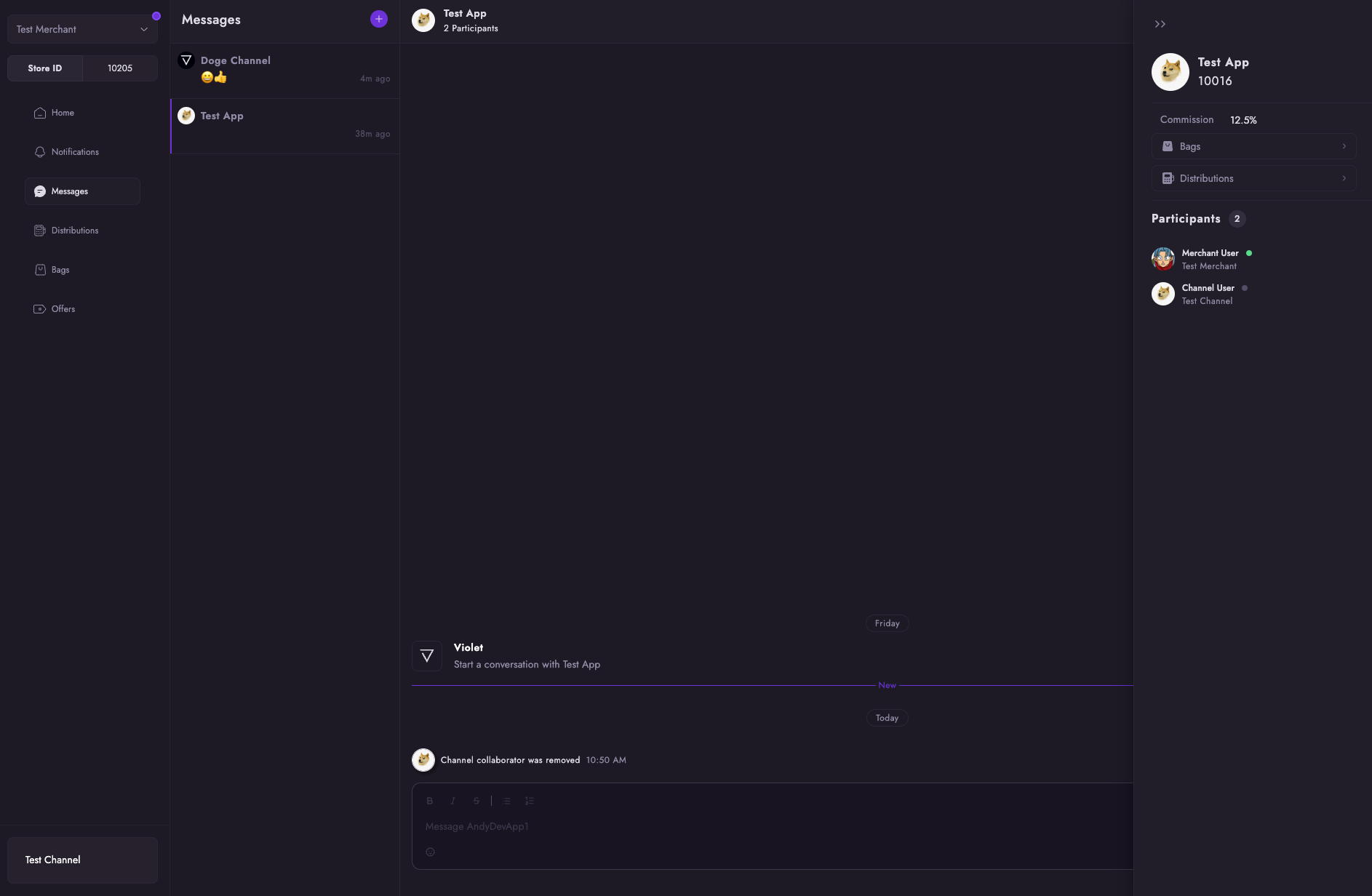 MERCHANT_ENABLEDandMERCHANT_DISABLED.These events notify subscribed channels when a merchant is enabled or disabled on Violet; for example: because of a Shopify app unistallation.