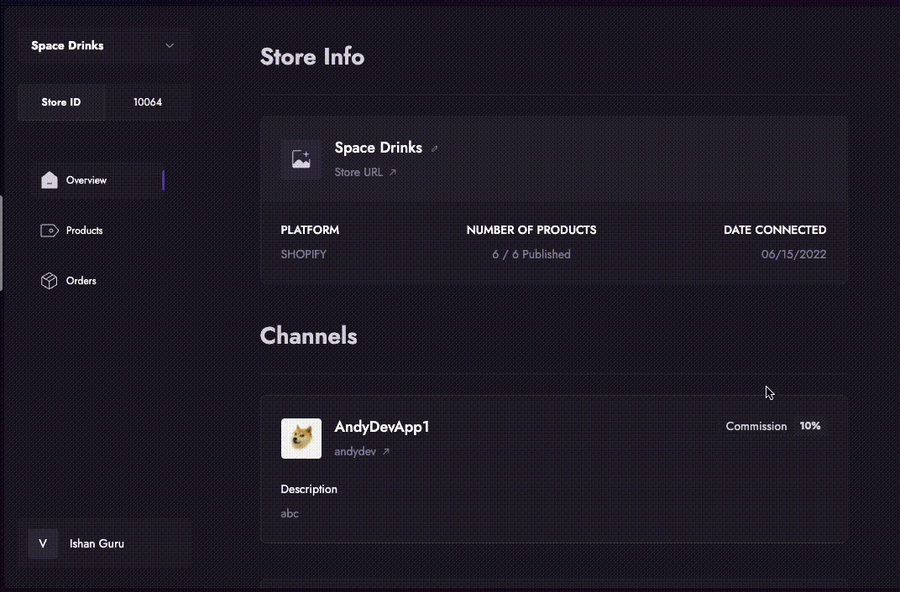 Merchants can define or update the commission rate for each Channel they’re connected to: