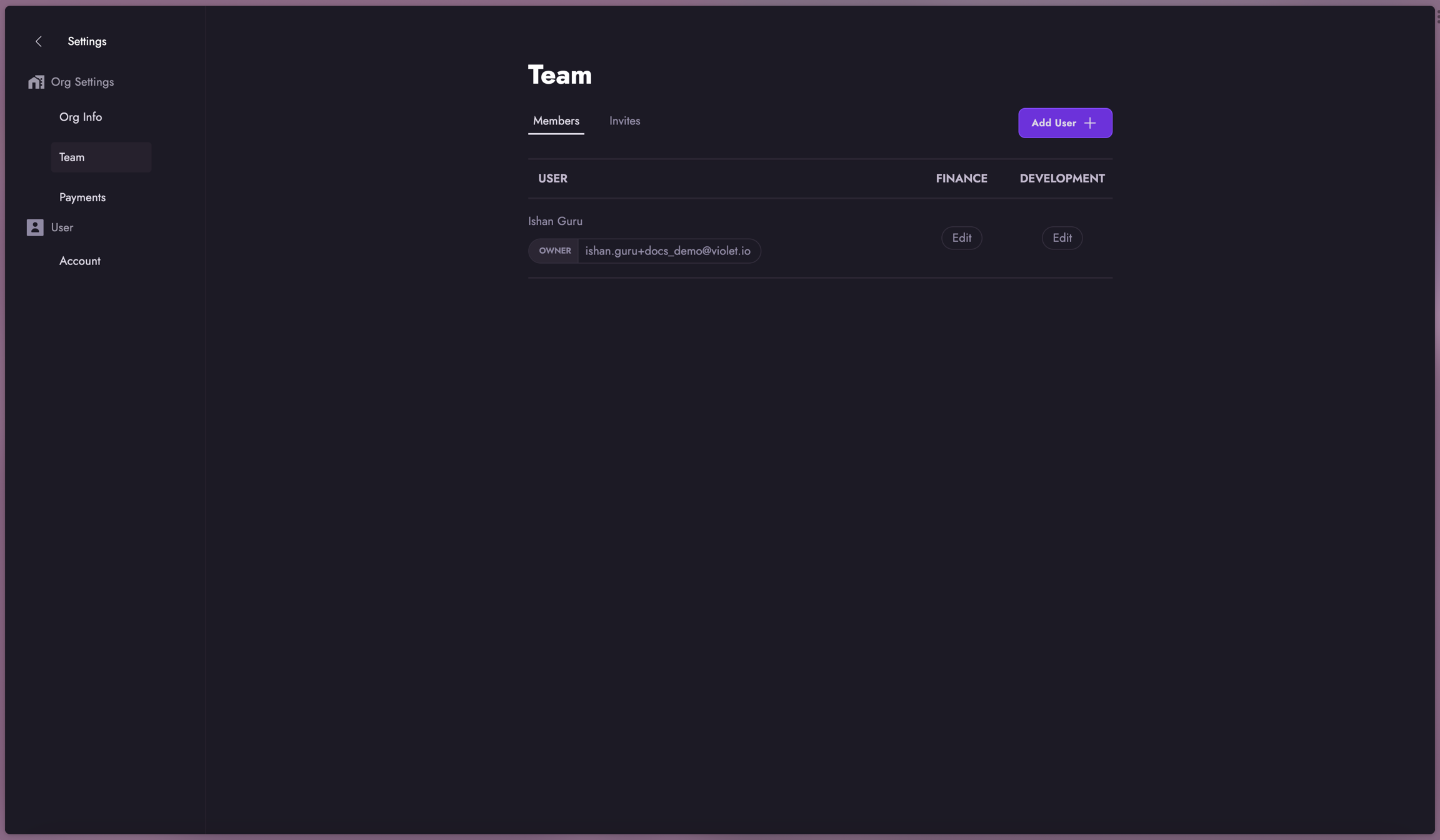 Here are your org settings and team settings including inviting new users.