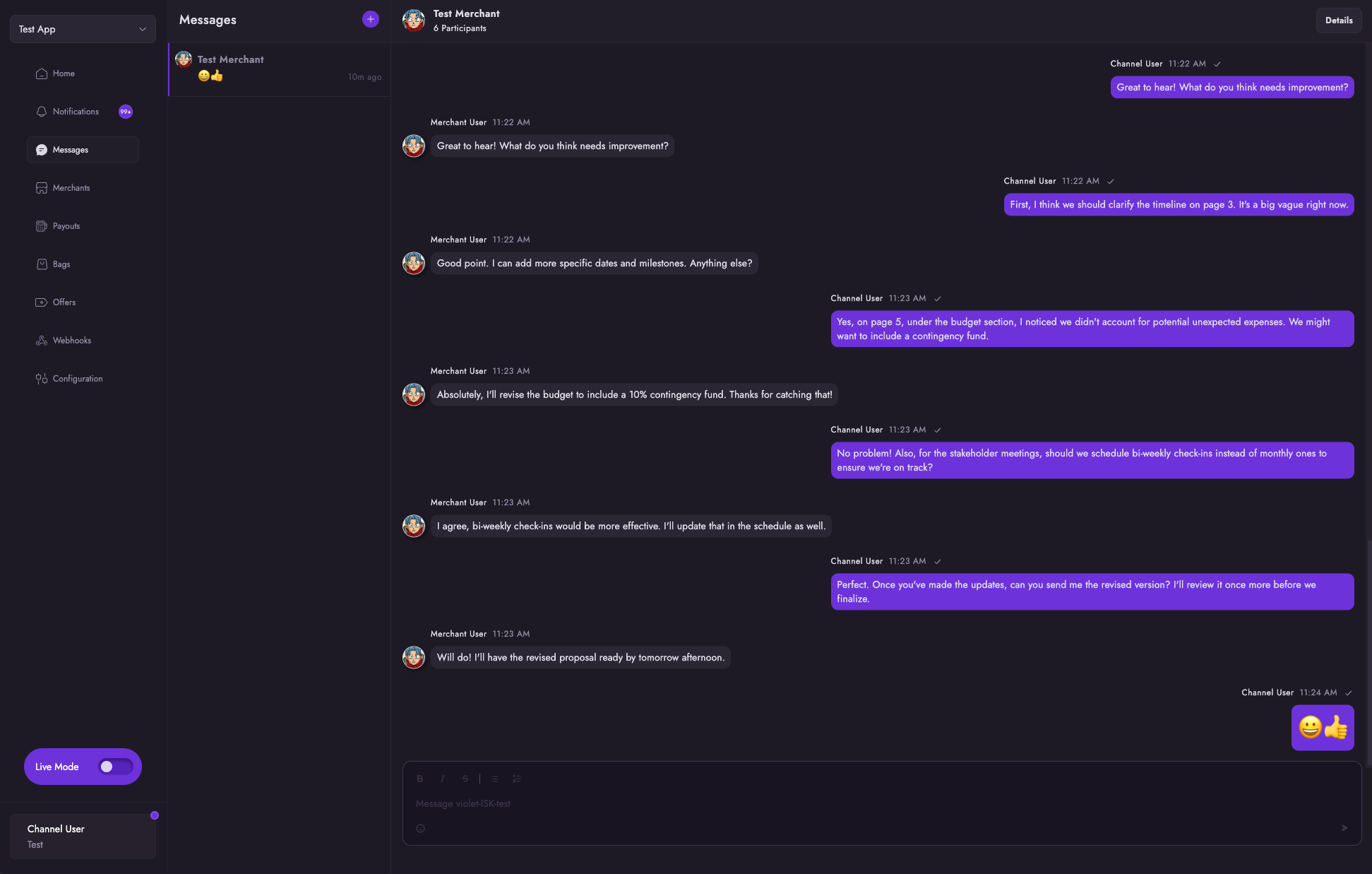 The Messages tab enables direct communication with your connected merchants. From here, you can initiate and manage conversations with merchants in real-time.