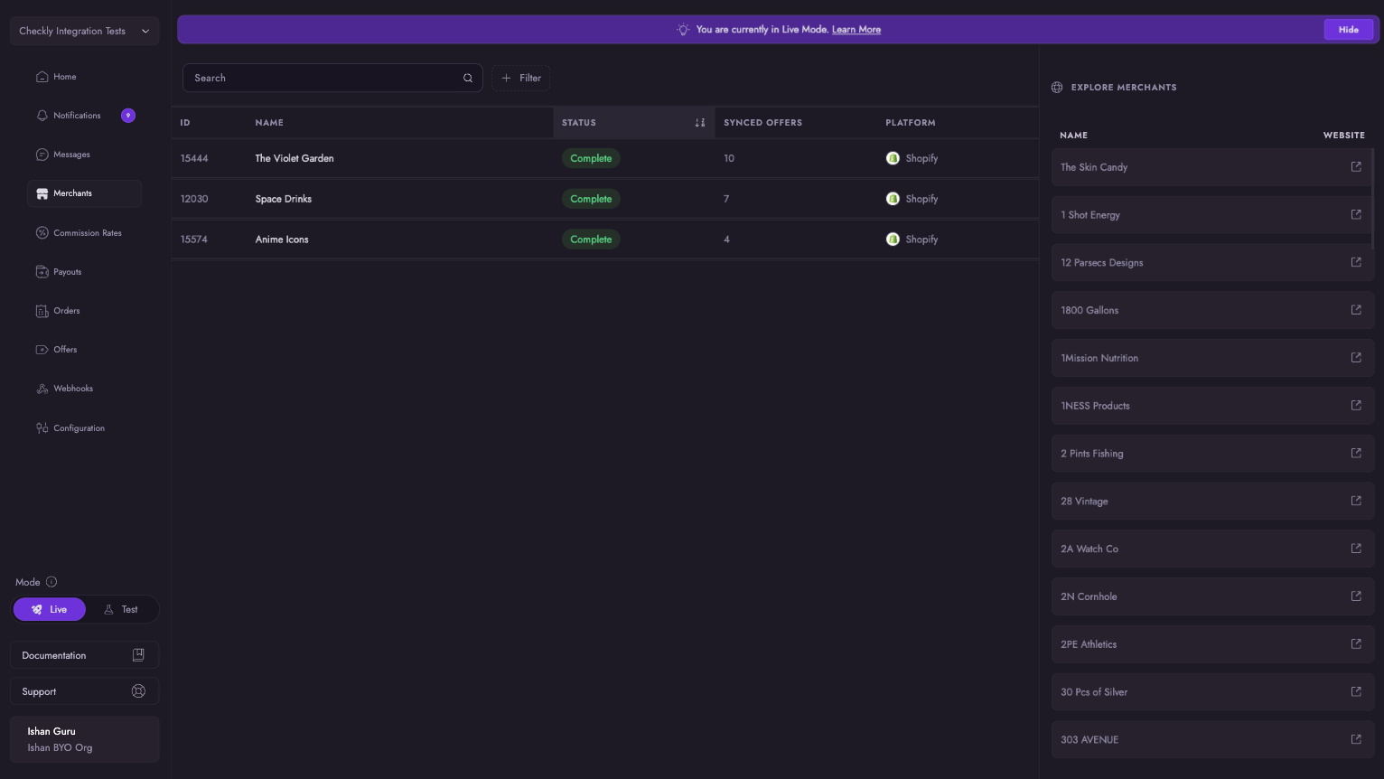 Once connected to Merchants, they will appear here, along with their Connection Health. You can explore already connected merchants on the right to see if any of them might be a fit for your brand.