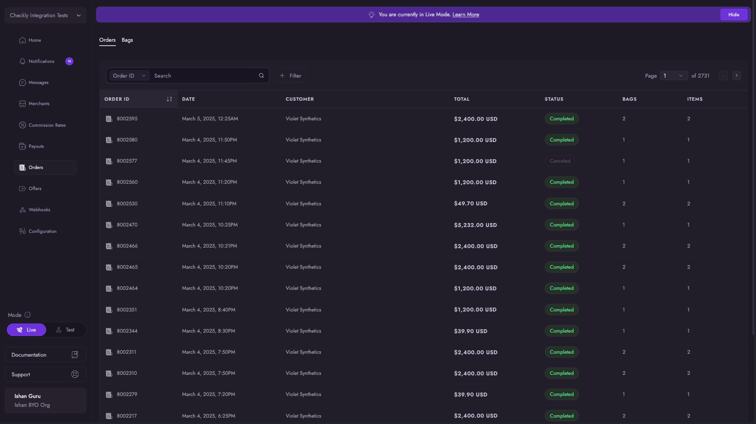 The Orders tab provides a comprehensive view of all transactions processed through your application. You can: